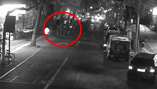 监控拍下了这惊险的一幕:女子坠落前几秒,不断有路人加入救人队伍,她落在帆布上后,又弹起来往外翻,将一位穿裙子的女人撞至数米远的马路上。这位被撞开的女子,正是陈巧慧。