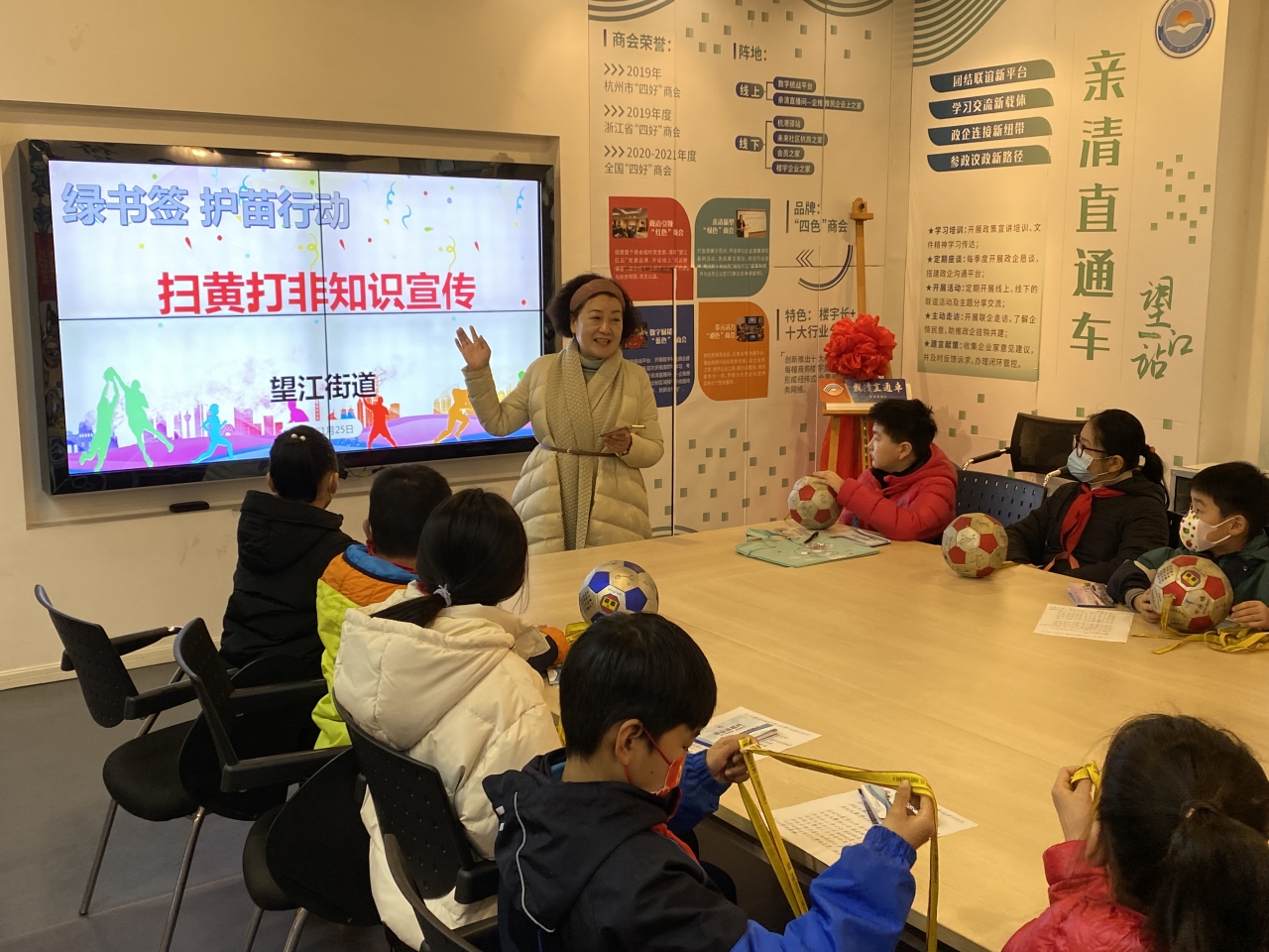 寒假伊始,春节临近,为积极营造利于未成年人身心健康成长的文化环境,近期,望江街道在杭州市上城区数字统战体验馆连续开展了两场“绿书签”护苗活动,近百余名学生、居民和企业人员来到了活动现场,街道通过讲座向学生们科普了何谓“扫黄”、何谓“打非”,教育学生们自觉提高远离文化垃圾侵害的意识,提高警惕的同时也将学到的知识传递给身边的人,呼吁大家参与到“扫黄打非”的工作中来。活动现场还发放了《全面参与扫黄打非》的宣传册、绿色书籍、绿色书签等,引导孩子们多读书、读好书、善读书。最后,也组织学生志愿者到望江街道多个新时代文明实践站发放宣传册,倡导营造干净清朗的社会环境。