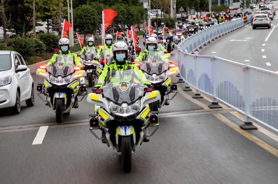 近日,龙港交警举行摩托车队大巡防主题宣传活动,通过社会化宣传模式,将遵守交规、文明出行的温馨提示传达至千家万户。(通讯员 金理港)